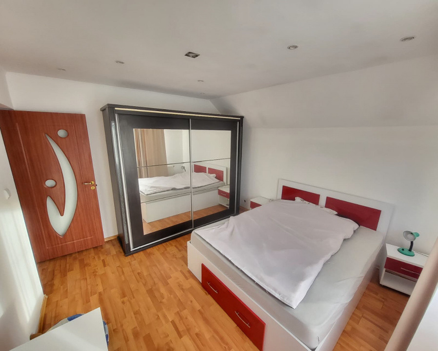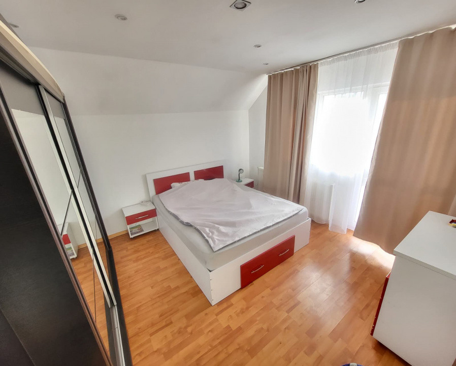 Etaj: hol larg, baie, 3 dormitoare, acces către pod